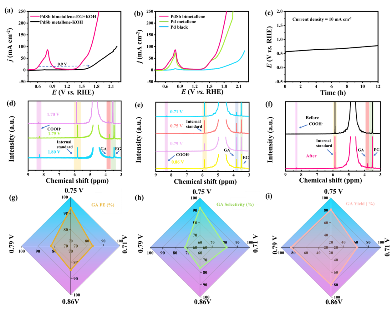 图1. PdSb bimetallene的电催化EG氧化GA性能测试