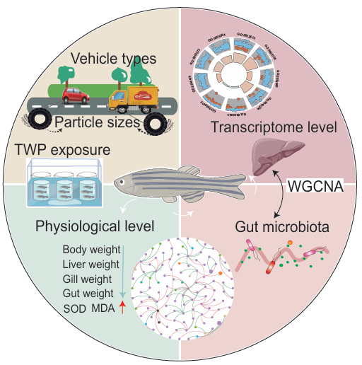 轮胎磨损颗粒(Tire Wear Particles, TWPs)是交通活动产生的重要微塑料污染物,广泛存在于土壤、水体和大气中,对水生生态系统的潜在威胁日益受到关注。然而,不同粒径、来源及浓度的TWPs在生物体内的毒理作用机制仍不清晰。为系统揭示TWPs的毒性规律及其对宿主与肠道微生物互作的影响,365英国上市公司官网生物工程学院丛静副教授指导张云、赵天宇、宋倩倩、孟庆轩等研究生,开展了一系列系统研究,并取得重要进展。