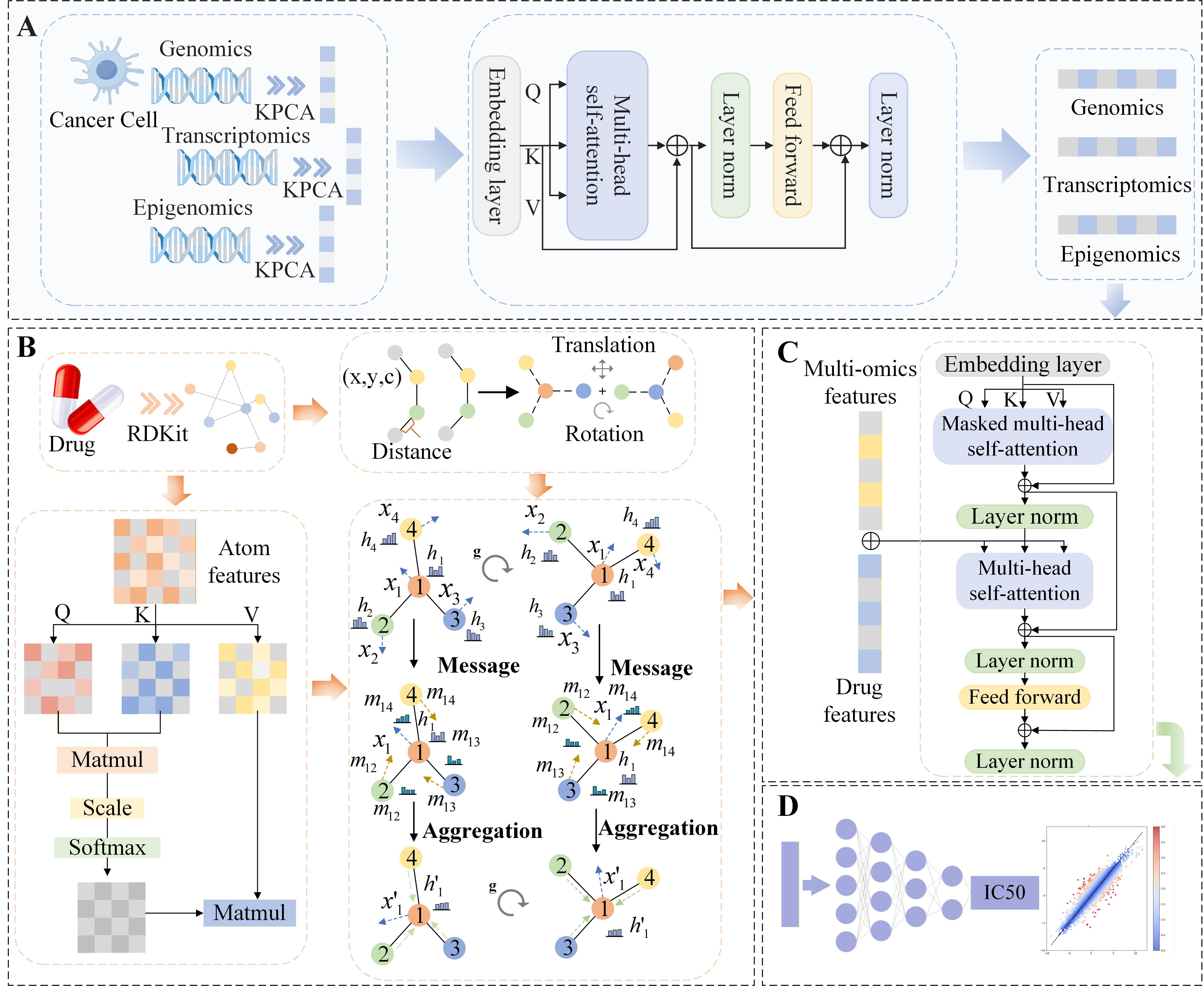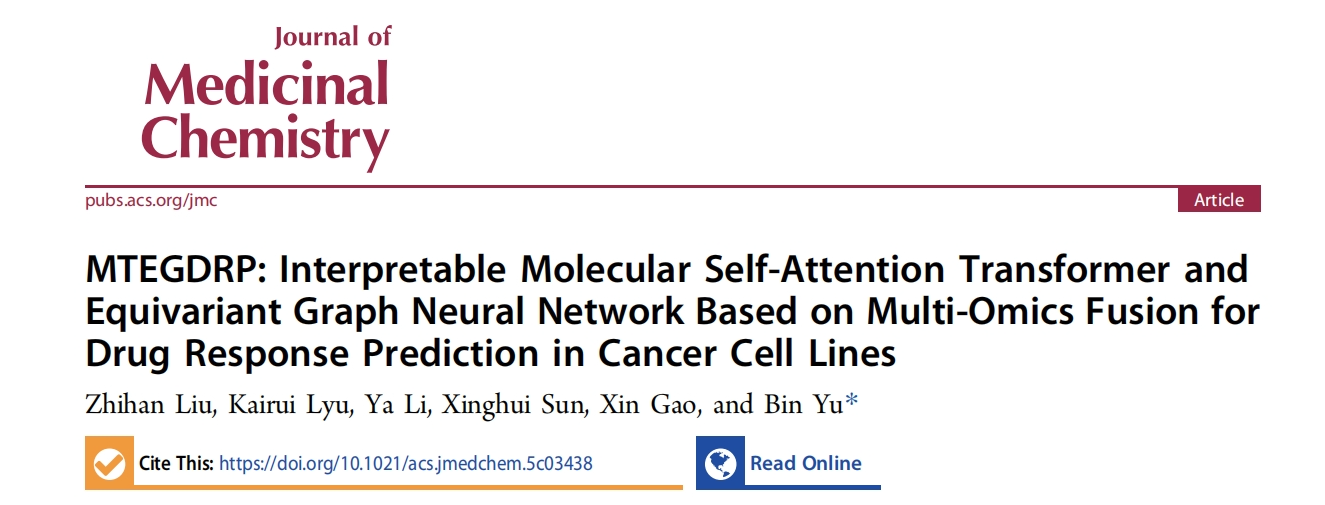 近日,数据科学学院于彬教授团队在人工智能驱动药物发现研究领域取得重要进展,相关成果以“MTEGDRP: Interpretable Molecular Self-Attention Transformer and Equivariant Graph Neural Network Based on Multi-Omics Fusion for Drug Response Prediction in Cancer Cell Lines”为题发表在药物化学领域顶级期刊Journal of Medicinal Chemistry (JMC)。于彬教授为论文的唯一通讯作者,2023级研究生刘志涵为第一作者,365英国上市公司官网为第一完成单位。