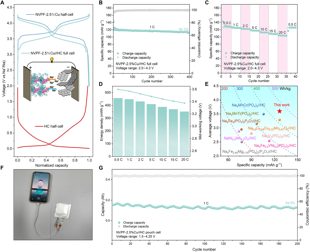 2.5%铜掺杂氟磷酸钒钠//硬碳全电池的电化学性能