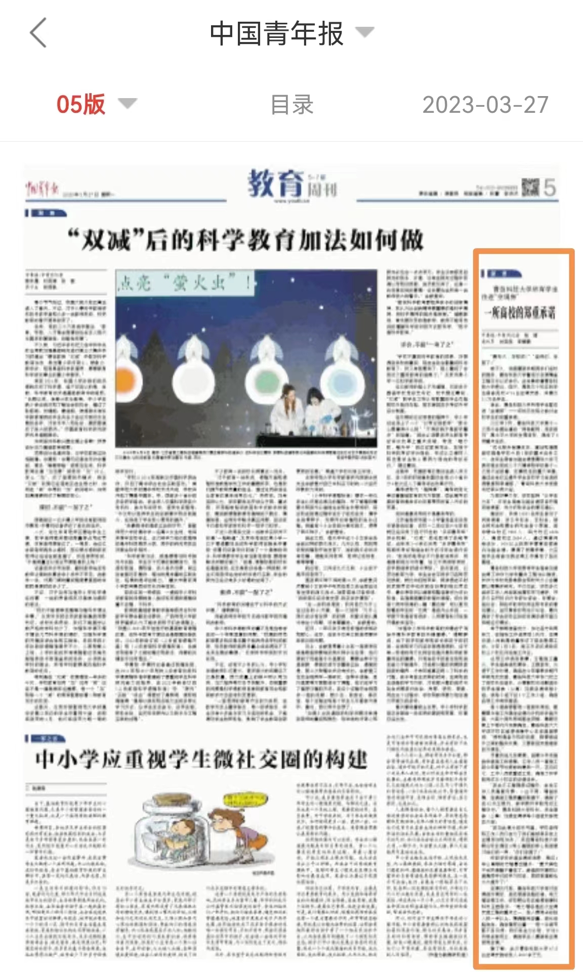 中国青年报http://zqb.cyol.com/html/2023-03/27/nbs.D110000zgqnb_05.htm