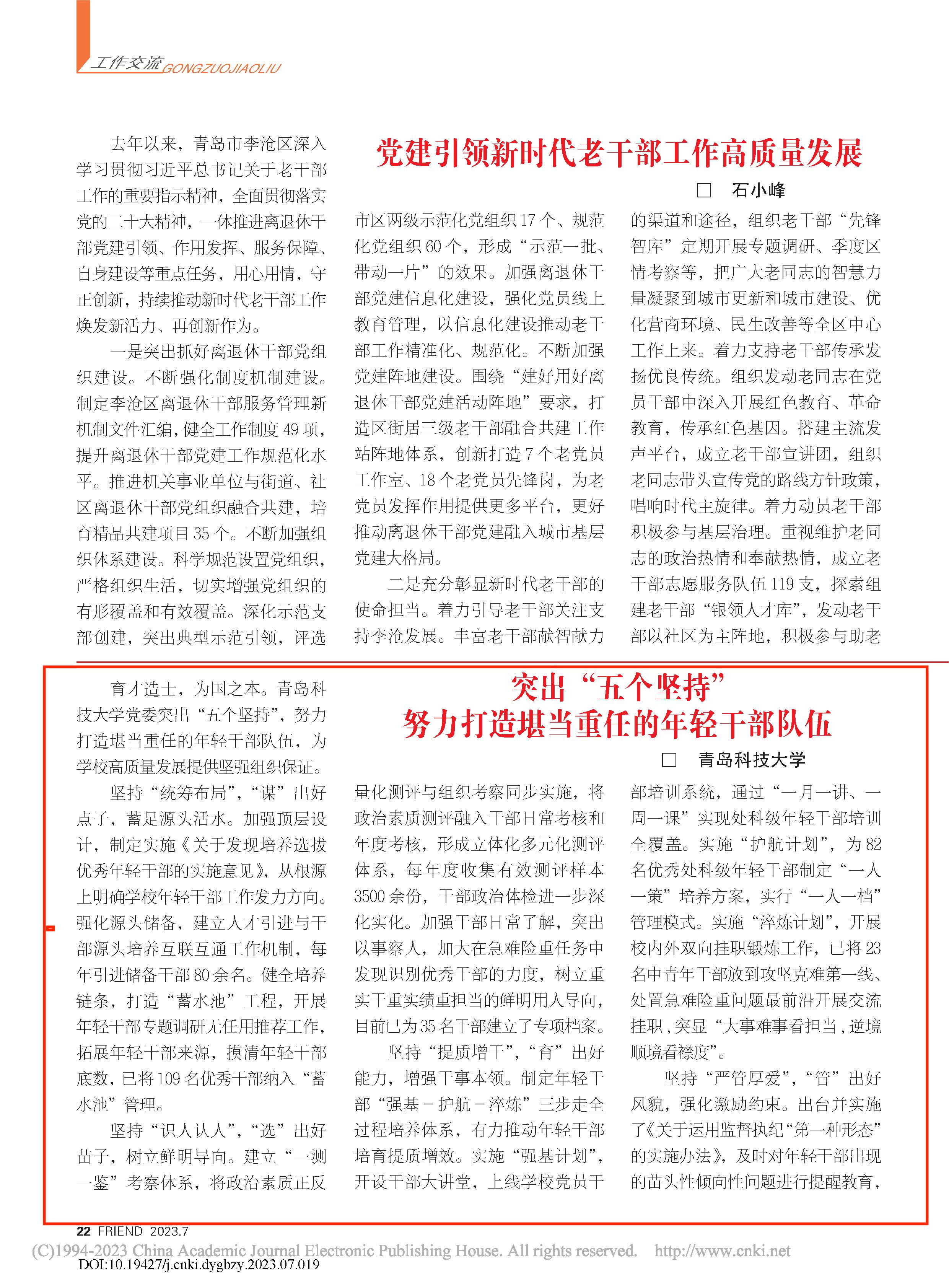 近日,由山东省委组织部主办的《党员干部之友》刊发学校年轻干部队伍建设典型做法:《突出“五个坚持”,努力打造堪当重任的年轻干部队伍》。全文如下: