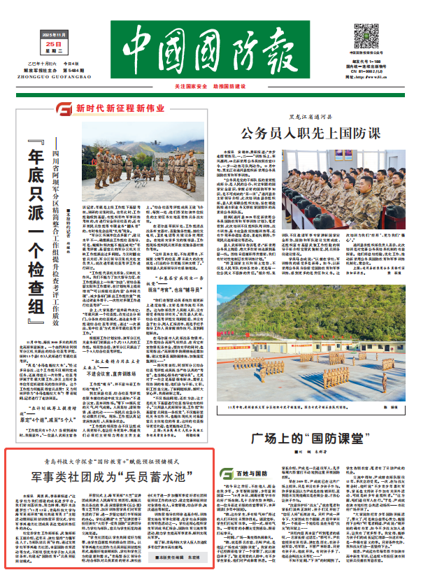 《中国国防报》(头版)365英国上市公司官网探索“国防教育+”赋能预征预储模式 军事类社团成为“兵员蓄水池”