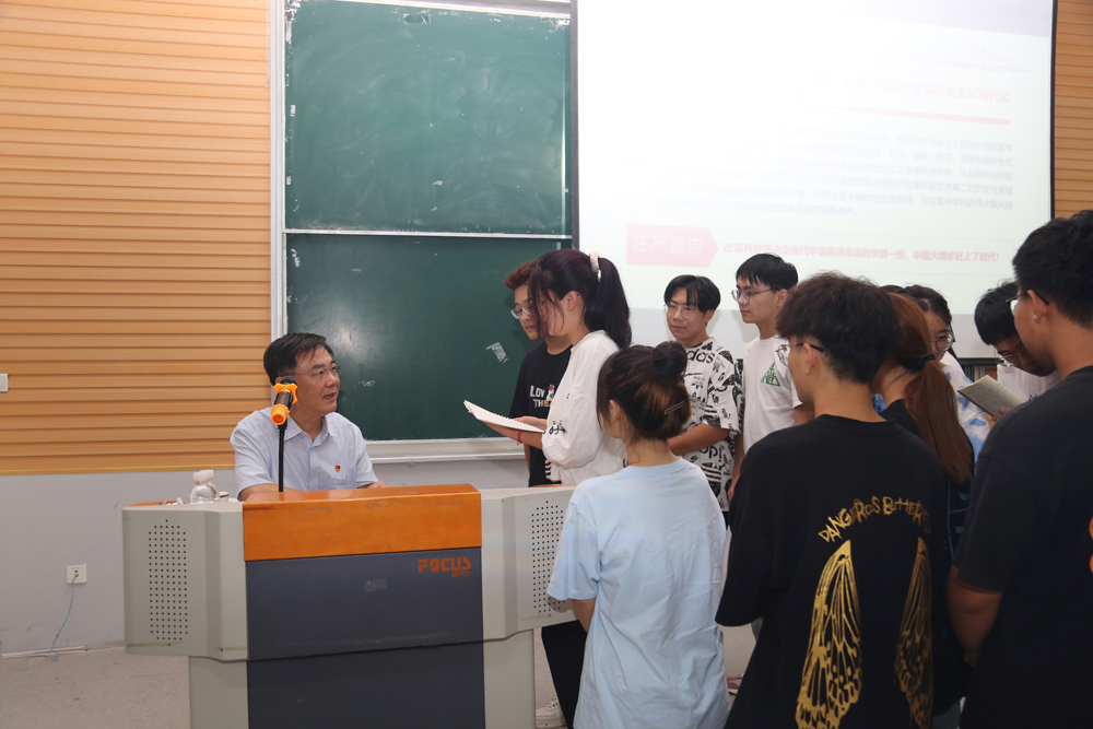 9月1日下午,党委书记马连湘深入到学生思政课堂,以“伟业彪炳史册 经验启迪未来”为题,开启学校学习宣传贯彻习近平总书记“七一”重要讲话精神“书记第一讲”。