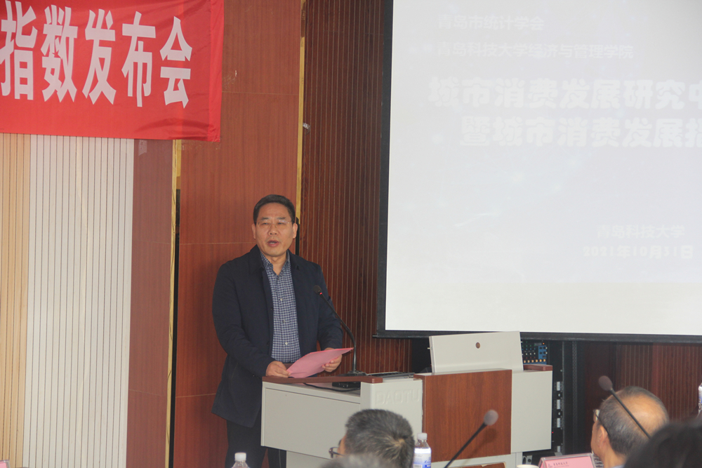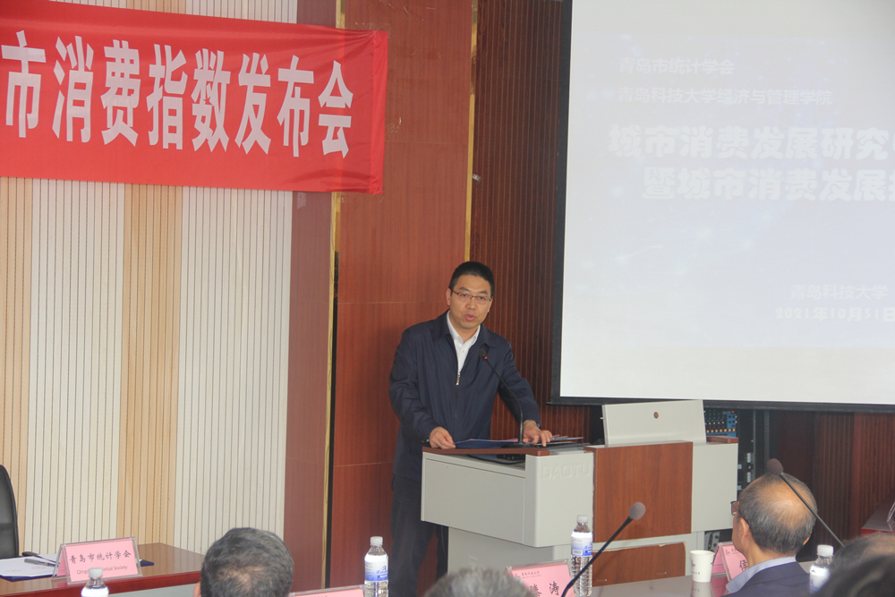 10月31日上午,城市消费发展研究中心成立大会暨城市消费发展指数发布会在我校举行,青岛市统计局党组书记、局长、青岛市统计学会会长刘岐涛,青岛市发展和改革委员会副主任、党组成员、市新旧动能转换综合实验区建设办公室专职副主任张旭东,青岛市统计局党组成员、副局长滕涛,学校党委常委、副校长吕万翔出席大会。