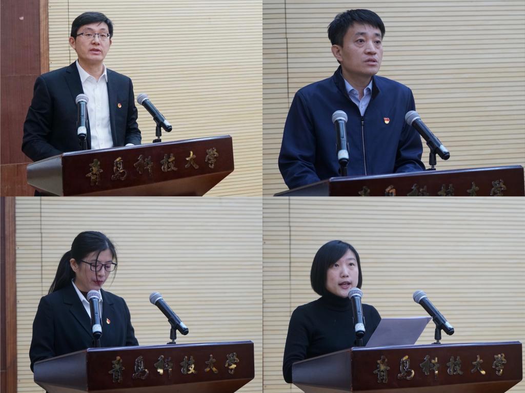会上,校团委书记毛常明、高密校区党委书记王建民、高分子学院橡胶党支部书记王鹤、机电学院本科生第二党支部书记王娟娟围绕党史学习教育作交流发言。
