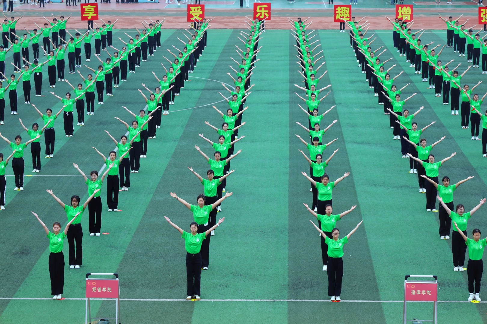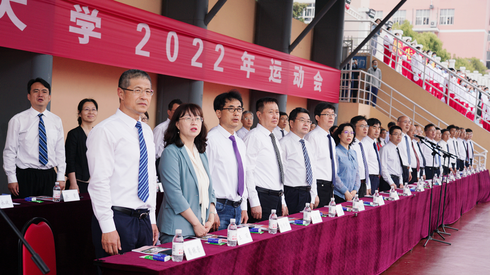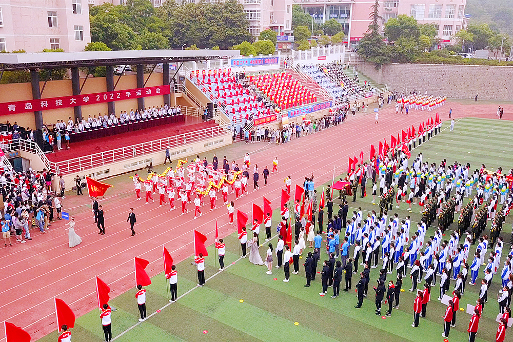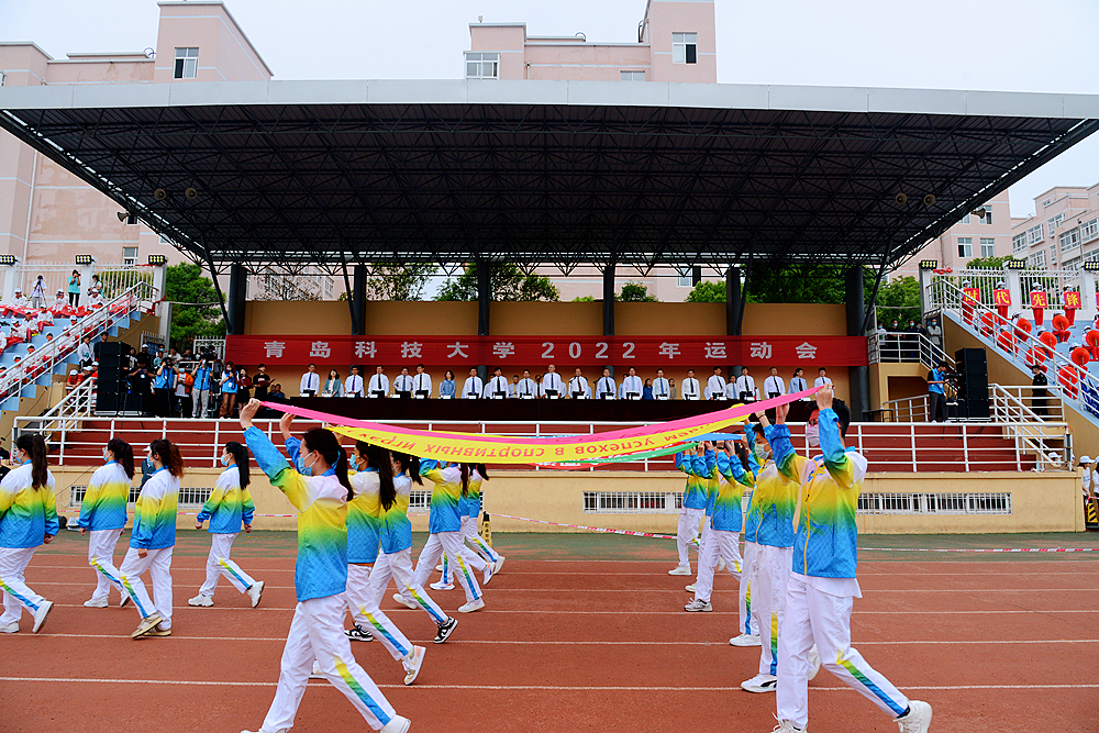 5月29日,学校2022年运动会在崂山校区田径场举行。校党委、行政领导班子成员陈克正、李勇、吕万翔、丁林、聂法良、陈刚、张洪坤出席开闭幕式。党委常委、副校长李勇致开幕辞。党委常委、副校长吕万翔致闭幕辞。党委常委、副校长丁林,党委常委、宣传部长陈刚分别主持开闭幕式。