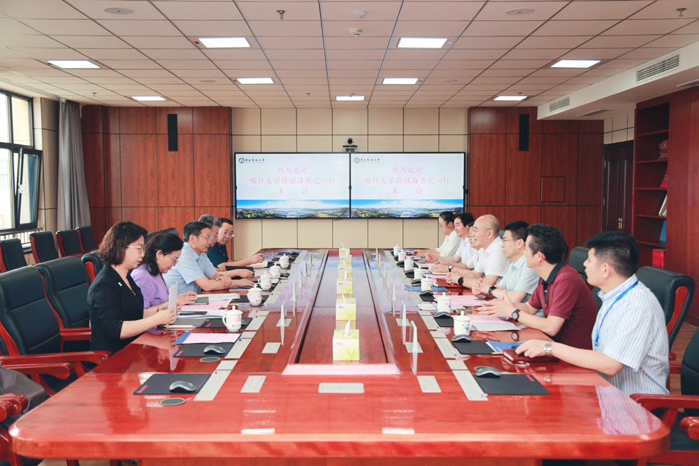 7月4日,喀什大学党委书记薛继海,党委常委、副校长赵斌一行来来校交流。校长陈克正,党委常委、副校长吕万翔参加座谈交流。