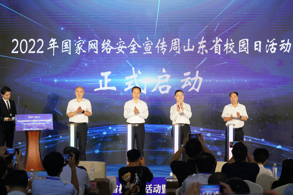 赵树岭、白皓、陈克正、林青家共同启动2022年国家网络安全宣传周山东省校园日活动。