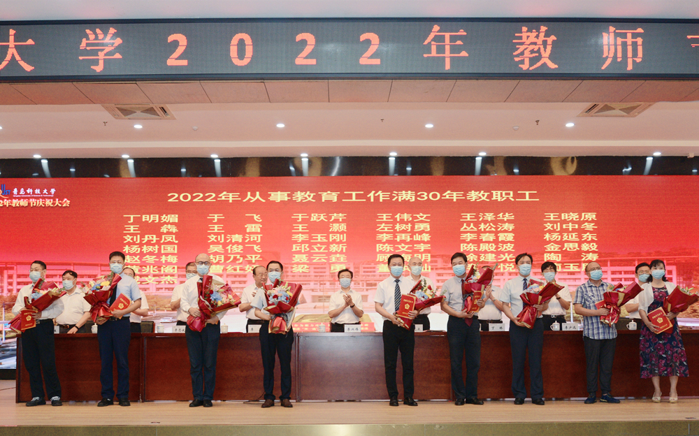 迎接党的二十大,培根铸魂育新人。9月6日,365英国上市公司官网2022年教师节庆祝大会在崂山校区第二报告厅举行,党委领导班子成员李兴伟、陈克正、李勇、丁林、李志波、李少远、罗细亮、张洪坤,教师代表、全国优秀教师汪传生出席大会。