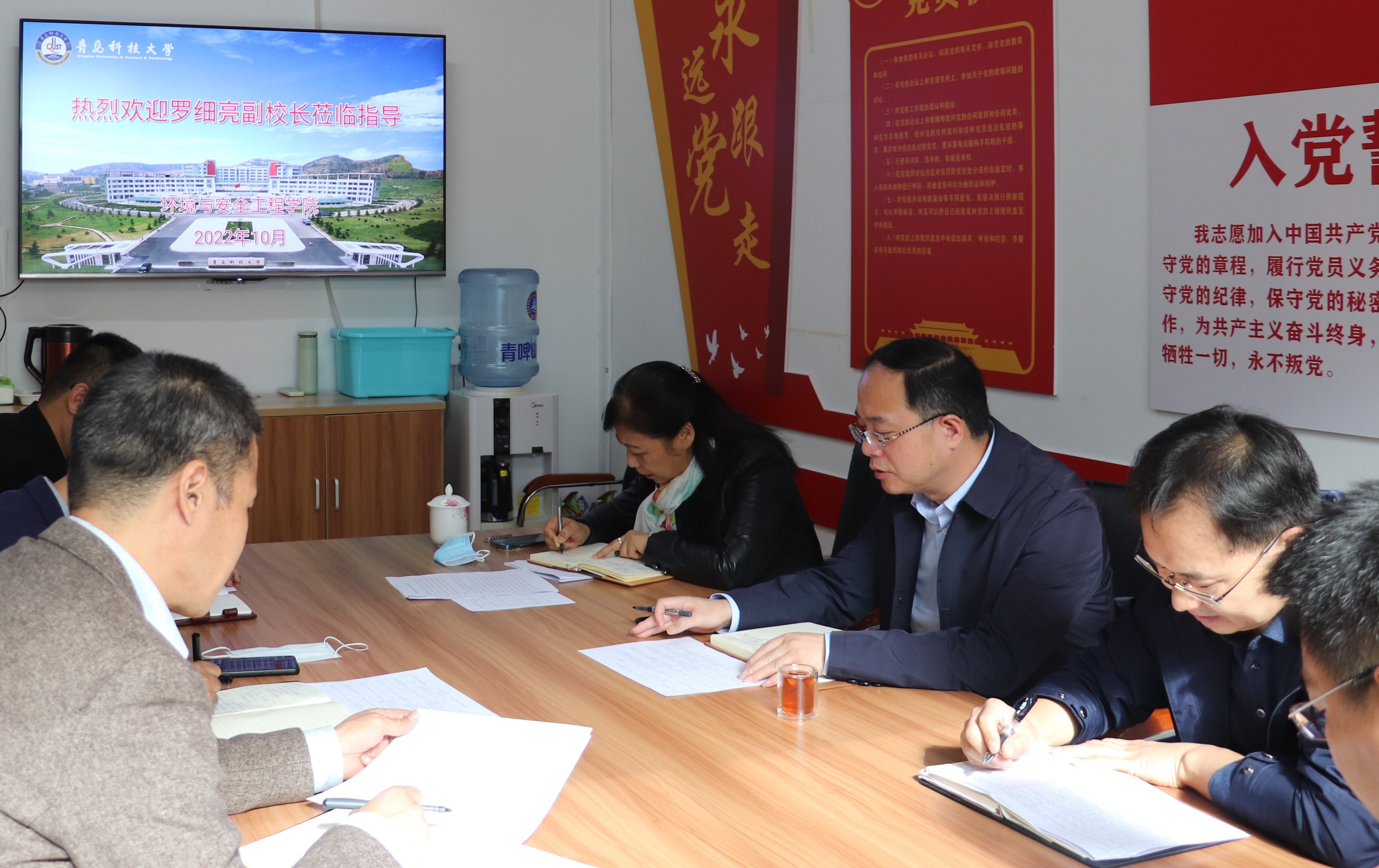 10月20日下午,学校党委常委、副校长罗细亮到环境学院调度学校第十一次党代会重点任务落实推进情况,环境学院领导班子全体成员参加会议。