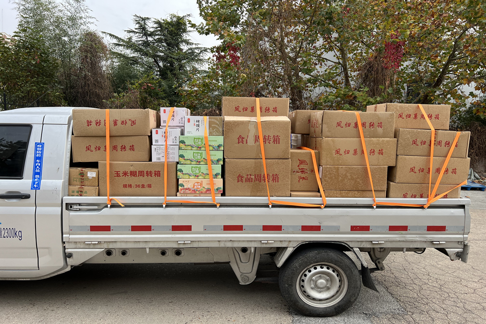 11月6日,爱心人士张爱华捐赠凤归巢玉米糊10箱、凤归巢各类煎饼38箱、挂面18箱、苹果12箱等价值5万余元的食品;爱心企业山东慈云信息科技有限公司捐赠凤归巢杏鲍菇酱20箱、白菜10985斤、土豆14322斤。