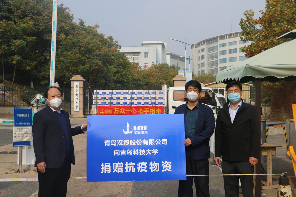 11月8日,青岛汉缆股份有限公司捐赠口罩23000只、84消毒液7200瓶、酒精80桶等一批防疫物资;艺术学院校友会捐赠生活垃圾袋3500个、各类医疗废弃物包装袋5700个、一次性口罩11400个;爱心人士顾洪飞捐赠牛奶55箱、测控03级校友捐赠苹果100箱。