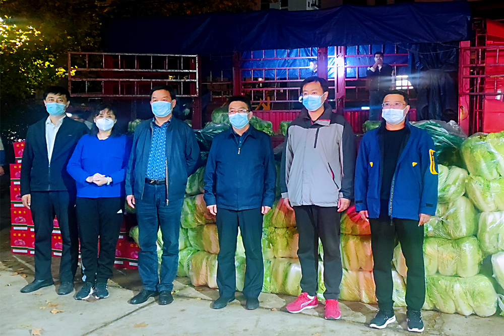 学校的抗疫行动牵动着“第一书记”的心。青科大省派“第一书记”工作组的刘保成、闫传新、王福军、何为得知学校情况后迅速与蒙阴县联城镇人民政府取得联系,协调爱心企业山东梓河建筑工程有限公司,发挥当地农副产品优势,积极筹措了苹果、大白菜等爱心物资,连夜装车,于11月6日晚上10点多送到了四方校区。“第一书记”们表示,校地一家,关键时刻,同心同行,共克时艰。