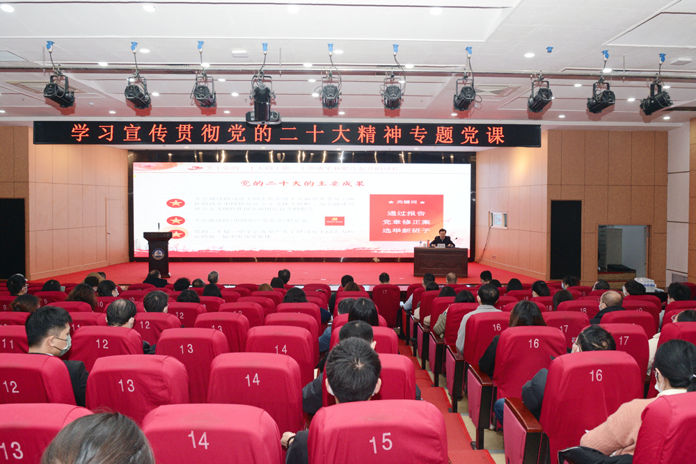 李兴伟从“党的二十大的主题、重要成果”“过去五年工作和新时代十年的伟大变革”“马克思主义中国化时代化”“中国式现代化”“全面建设社会主义国家的目标任务”“坚持党的全面领导和全面从严治党”“应对风险挑战”“党的二十大报告中关于教育科技人才的战略部署”等八个方面,全面解读了党的二十大报告中的新观点、新论断、新思想,并对重点内容进行深入阐释。他指出,中国共产党第二十次全国代表大会是全党全国各族人民迈上全面建设社会主义现代化国家新征程、向第二个百年奋斗目标进军的关键时刻召开的一次十分重要的大会,党的二十大报告高屋建瓴、主题鲜明、气势磅礴、催人奋进,通篇闪耀着马克思主义的真理光芒,是激励全党继往开来、砥砺奋进、勇毅前行的政治宣言和进军号角。