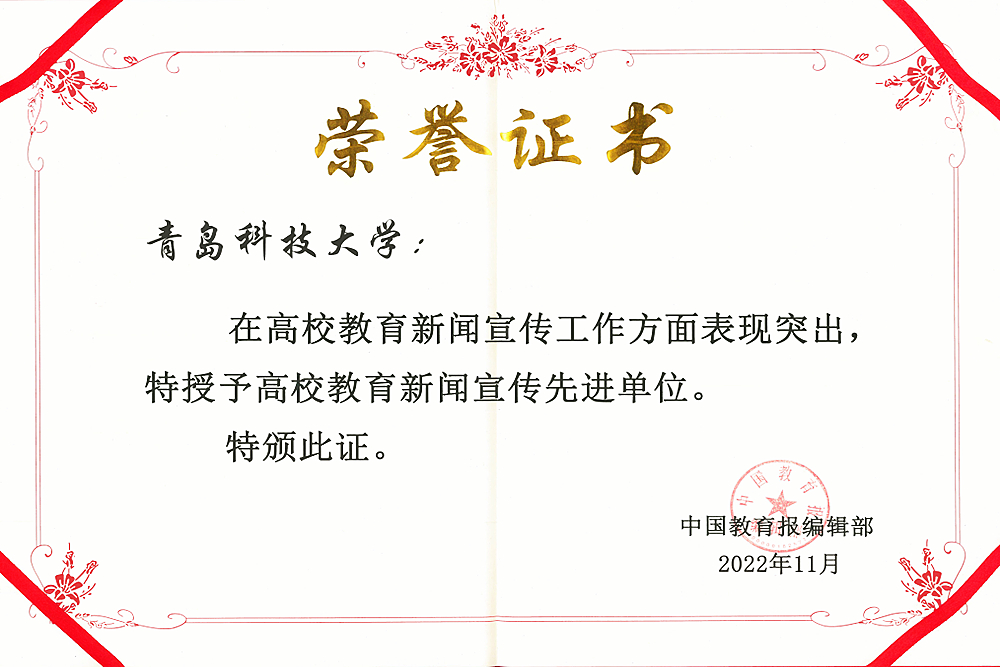 日前,因我校在2022年教育新闻宣传工作方面表现突出,《中国教育报》编辑部授予我校“高校教育新闻宣传先进单位”荣誉称号,党委宣传部李鲲鹏同志获评“高校优秀通讯员”。