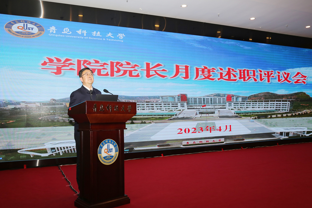为进一步树立大抓基层的鲜明导向,充分发挥各学院主观能动性,营造比学赶超的浓厚氛围,让“走在前、开新局”成为干事创业的新常态,4月6日下午,学校在崂山校区第三报告厅召开首期学院院长述职评议会。学校党委领导班子成员出席会议,党委书记李兴伟主持会议,经济与管理学院、数理学院、中德科技学院、法学院、材料科学与工程学院等五个学院院长进行了述职。