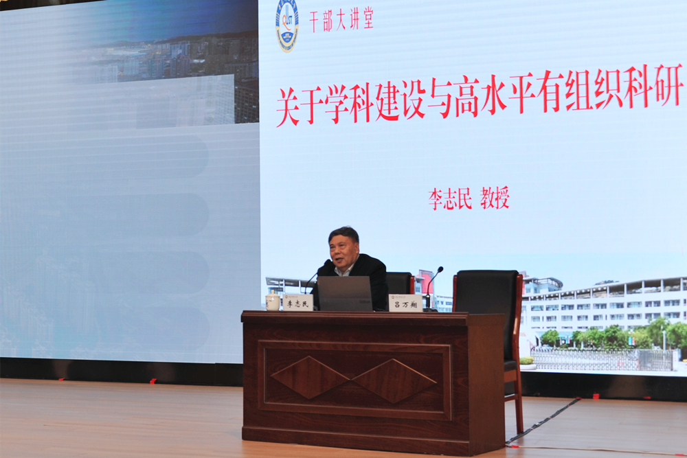 为深入学习贯彻党的二十大精神以及学校第十一次党代会提出的“有组织科研”各项任务,全面提升广大干部干事创业本领,4月7日上午,学校党委邀请教育部科技发展中心原主任李志民教授做客干部大讲堂,作《关于学科建设与高水平有组织科研》的专题辅导报告。学校党委领导班子成员出席报告会。报告会由党委常委、副校长吕万翔主持。