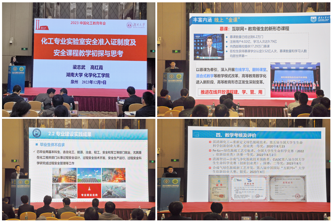 梁志武教授围绕如何在实验室培养学生创新能力,系统介绍了建立实验室安全准入证制度的有效途径,以及通过创新教学方式初探提升学生安全素养的新思路。刘义教授围绕化工安全工程专业复合型人才培养,深入剖析新工科理念,探讨如何通过创新教学模式,培养更符合行业需求的全面发展的化工安全专业人才。管国锋教授以化工一流课程建设路径思考与探索实践为切入点,分享了课程体系的探索过程,为适应日益变化的化工领域需求提供了可行的教育解决方案。田文德教授围绕《化工安全与环保》一流课程教学改革与实践,重点介绍了虚拟仿真技术在课程中的独特应用。通过充分发挥虚拟仿真特色,提升学生在安全与环保领域的实际应用能力,为化工教育赋予了更为生动与实践性的教学方式。