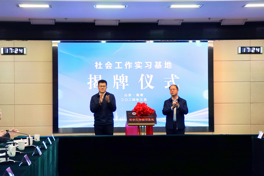 仪式上,罗细亮、王大伟共同为社会工作实习基地揭牌。高密校区、法学院与高密市委政法委、人民法院、人民检察院、密水街道分别签署合作协议和实习基地协议。校地双方将在人才培养、理论研究、成果转化、专项培训、人才智库等方面开展交流合作。