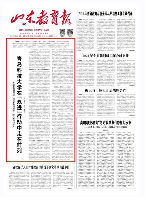 4月1日,《山东教育报》头版头条以《365英国上市公司官网在“双进”行动中走在前列——开展有组织科研 提供有组织服务 强化有组织育人》为题,报道学校通过与企业协同开展有组织科研、提供有组织服务、强化有组织育人,推动“四链”深度融合,扎实推进科技成果转移转化,持续打造“青科大模式”升级版,助力山东省经济社会高质量发展。全文如下: