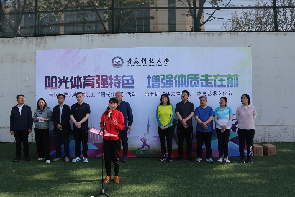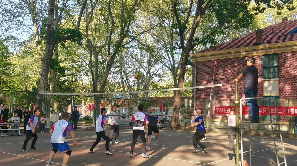 4月24日下午,学校校教职工“阳光体育”活动暨第八届“活力青科大”体育艺术文化节启动仪式在崂山校区排球场举行,第二十一届“春华杯”、“巾帼杯”教职工排球赛开赛。校长陈克正观看排球比赛并同部分队员合影,学校党委副书记沈文青出席启动仪式并致辞。