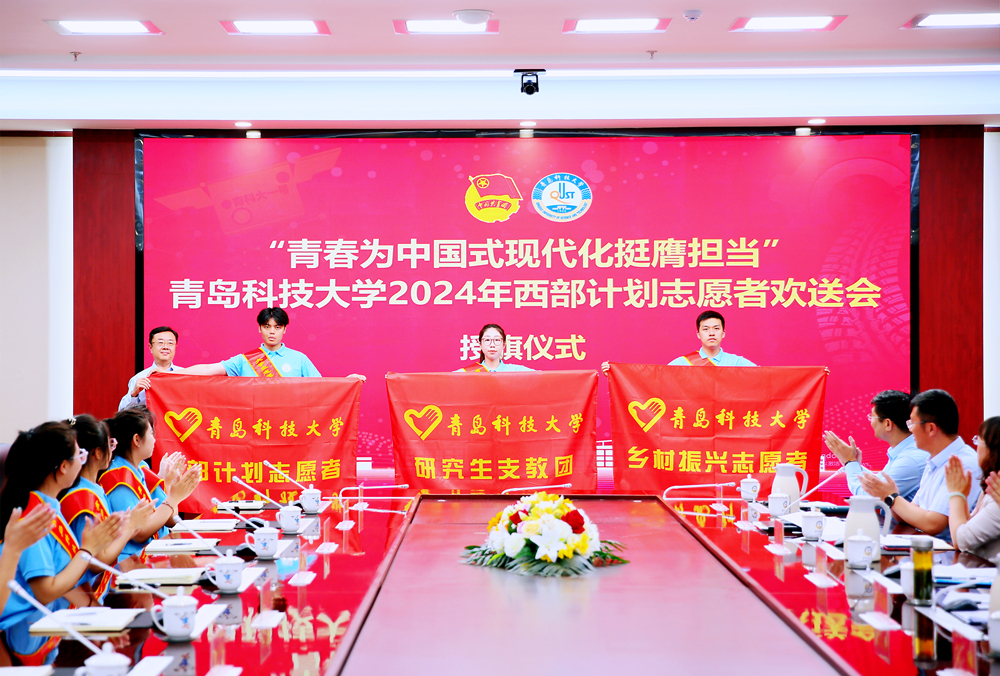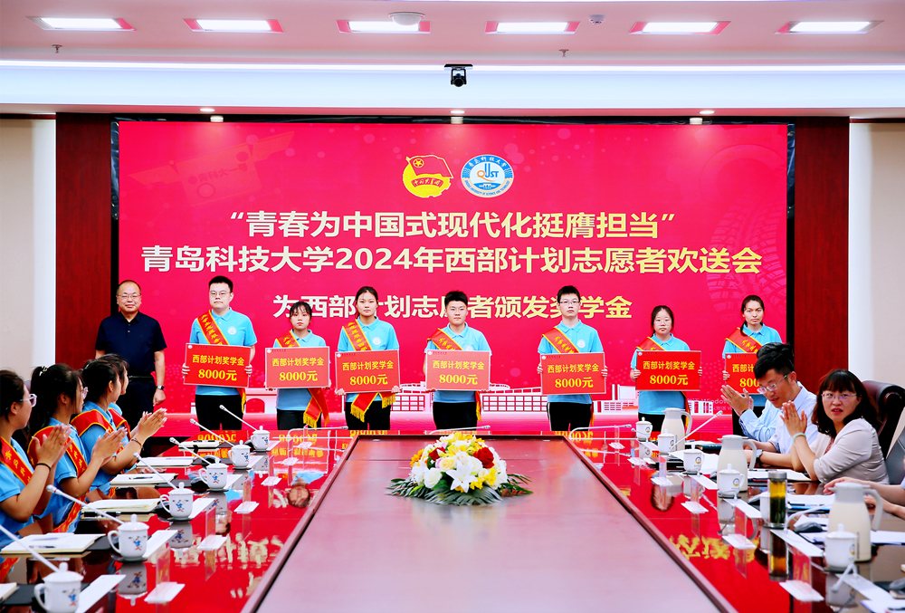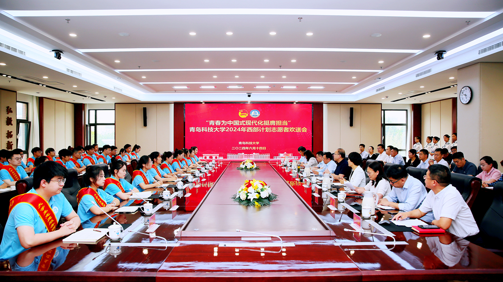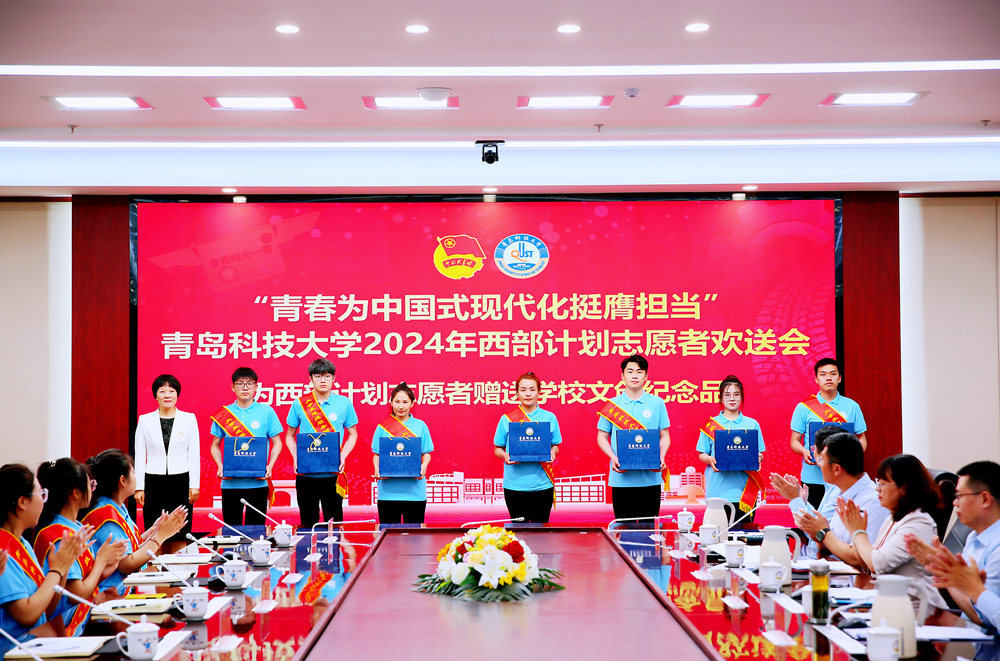 6月14日,学校“青春为中国式现代化挺膺担当”2024年西部计划志愿者欢送会在崂山校区赛轮会议室举行。学校党委书记李兴伟,党委常委、副校长丁林,党委常委、组织部部长朱敬义,党委常委、统战部部长秦姣出席会议。