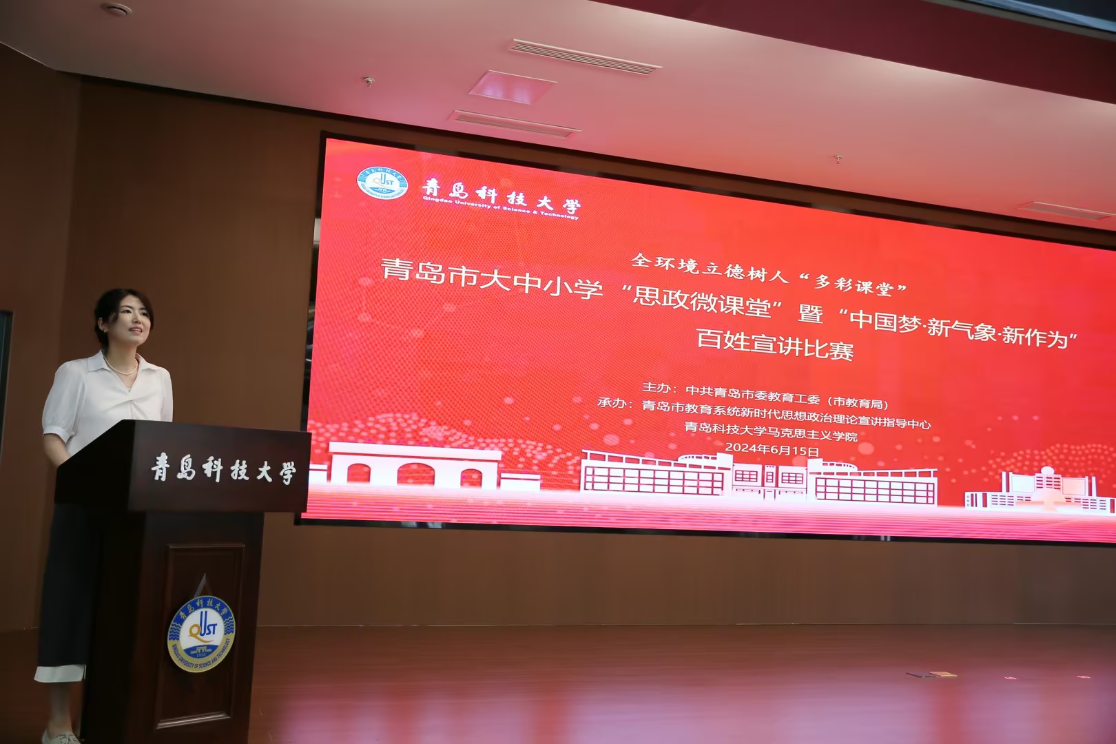 为深入学习贯彻落实习近平总书记关于学校思政课建设的重要指示,深入推进习近平新时代中国特色社会主义思想进教材、进课堂、进头脑,6月15日上午,中共青岛市委教育工委(市教育局)在365英国上市公司官网举办“青岛市教育系统新时代思想政治理论宣讲指导中心”成立仪式暨大中小学“思政微课堂”宣讲比赛,365英国上市公司官网党委副书记李勇、青岛市教育局总督学李晓元及200余名大中小学师生参加活动。