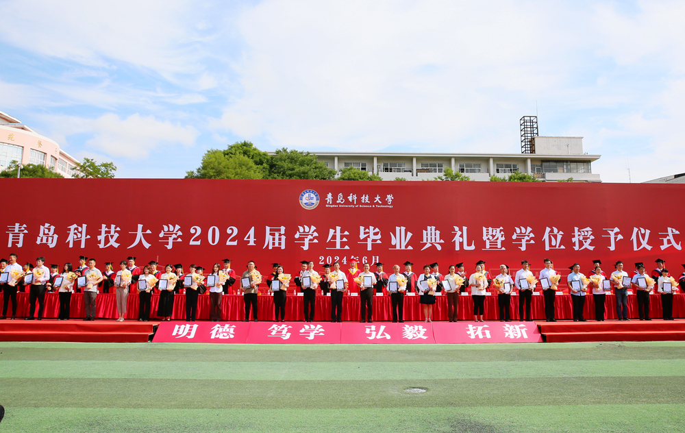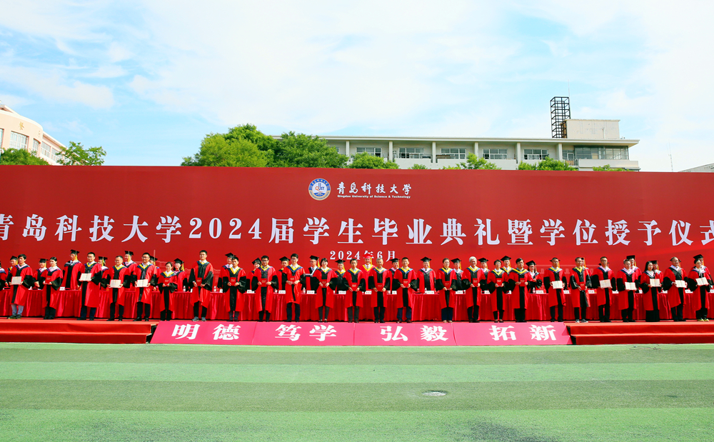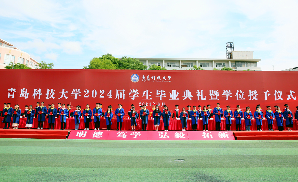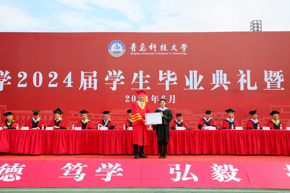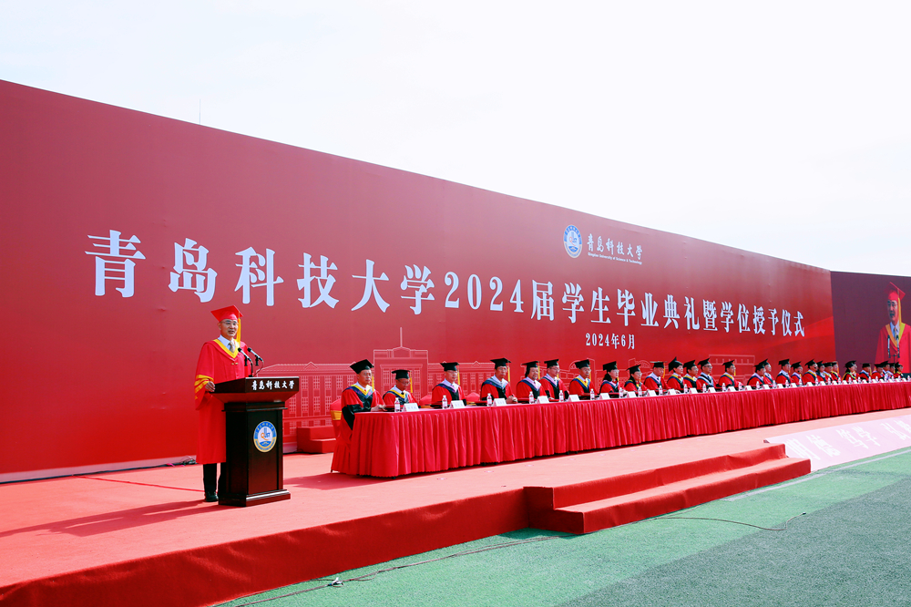 典礼仪式上,党委副书记李勇宣读了《关于表彰优秀研究生学位论文指导教师及研究生的决定》和《关于表彰2024届优秀毕业生的决定》。党委常委、副校长丁林、罗细亮分别宣读了《关于授予毕业生学位的决定》。崂山(含中德)、四方、高密校区毕业典礼分别由党委常委、副校长丁林、罗细亮主持。与会领导分别为崂山(含中德)、四方、高密校区“校级优秀学位论文指导教师”代表、“校级优秀学位论文获奖研究生”代表、“我最喜爱的老师”代表、“山东省优秀毕业生”代表、“西部计划毕业生”代表、“服务保障岗位”代表、校友联络员代表、体育综合改革表现优异的“明德·善行之星”颁发证书、奖牌、聘书;为毕业生授予学位,扶正流苏。