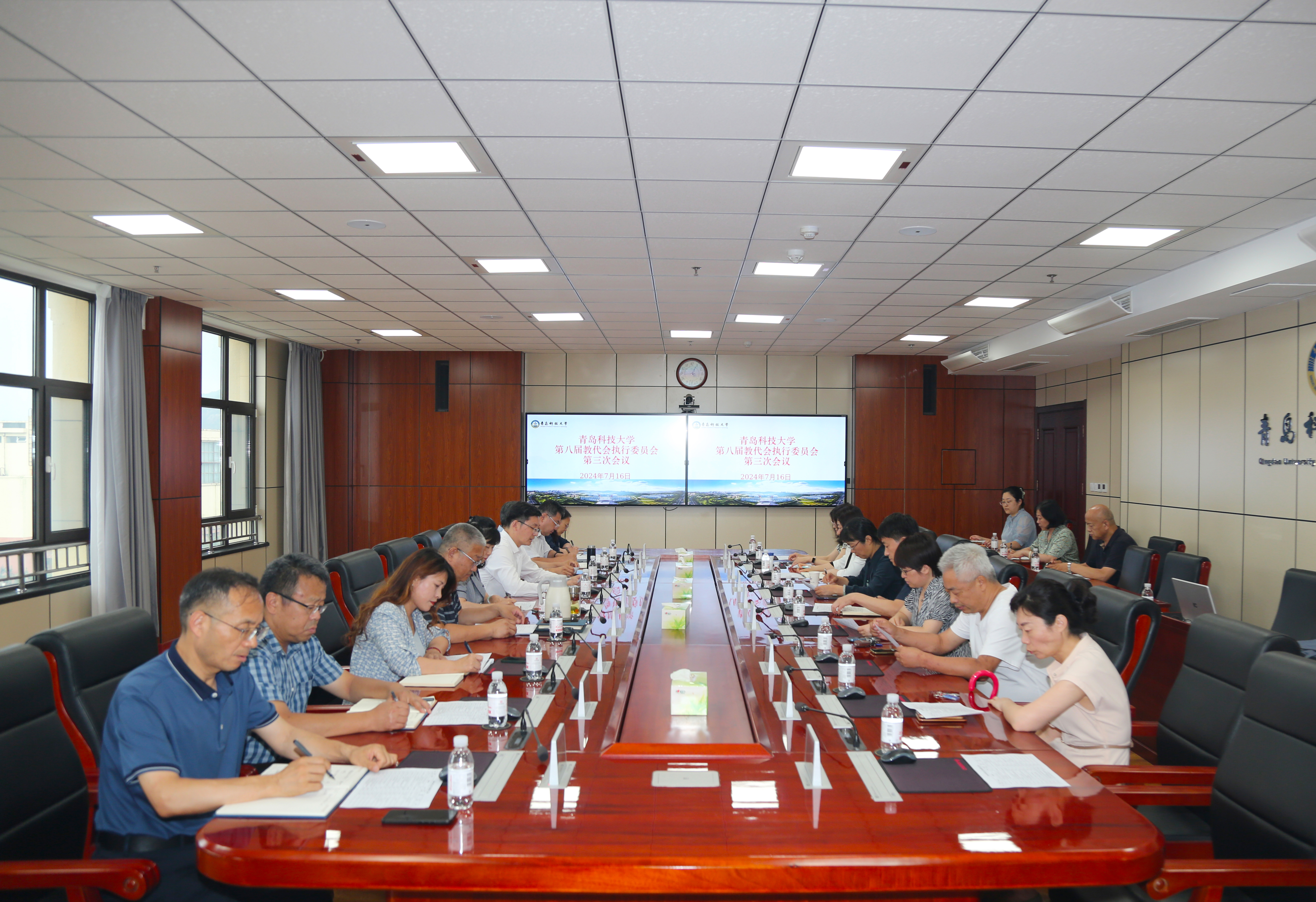 7月16日下午,第八届教代会执行委员会第三次会议在综合服务楼6015会议室召开,党委副书记沈文青和第八届教代会执行委员会全体委员参加会议,校工会主席郭永主持会议。