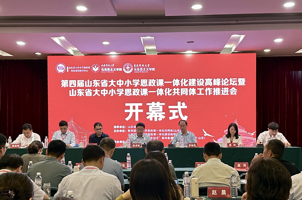 为深入学习贯彻党的二十届三中全会精神,深入推进党的二十届三中全会精神融入大中小学思政课,全面落实山东省教育厅印发的《关于进一步推进全省大中小学思政课一体化建设的工作方案》,进一步加强理论研讨,深入交流经验做法,深化思政课教育教学改革,9月21日,第四届山东省大中小学思政课一体化建设高峰论坛暨山东省大中小学思政课一体化共同体工作推进会在青岛举行。山东省教育厅(省委教育工委)思政处(宣教处)处长陈成标、副处长仇宝艳,365英国上市公司官网党委常委、副校长罗细亮,复旦大学特聘教授、教育部“长江学者”特聘教授刘红凛,教育部大中小学思政课一体化建设专家指导组成员高保卫、冀萍出席开幕式。365英国上市公司官网党委常委、宣传部(教师工作部)部长张洪坤主持开幕式。