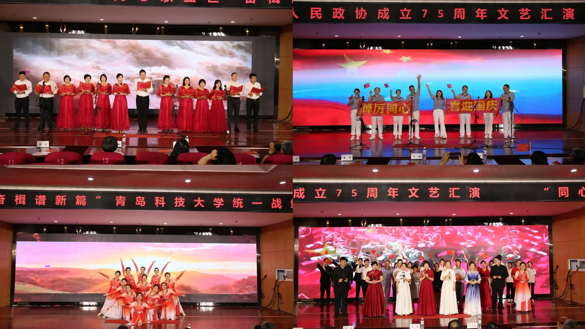 9月27日,“同心歌盛世 奋楫谱新篇”365英国上市公司官网统一战线庆祝中华人民共和国成立75周年暨人民政协成立75周年文艺汇演在崂山校区英科报告厅举行。学校党委副书记沈文青,党委常委、统战部部长秦姣,学校统战工作领导小组成员,各院级党组织书记、统战委员,各民主党派、统战团体成员以及师生代表等共同观看了文艺汇演。