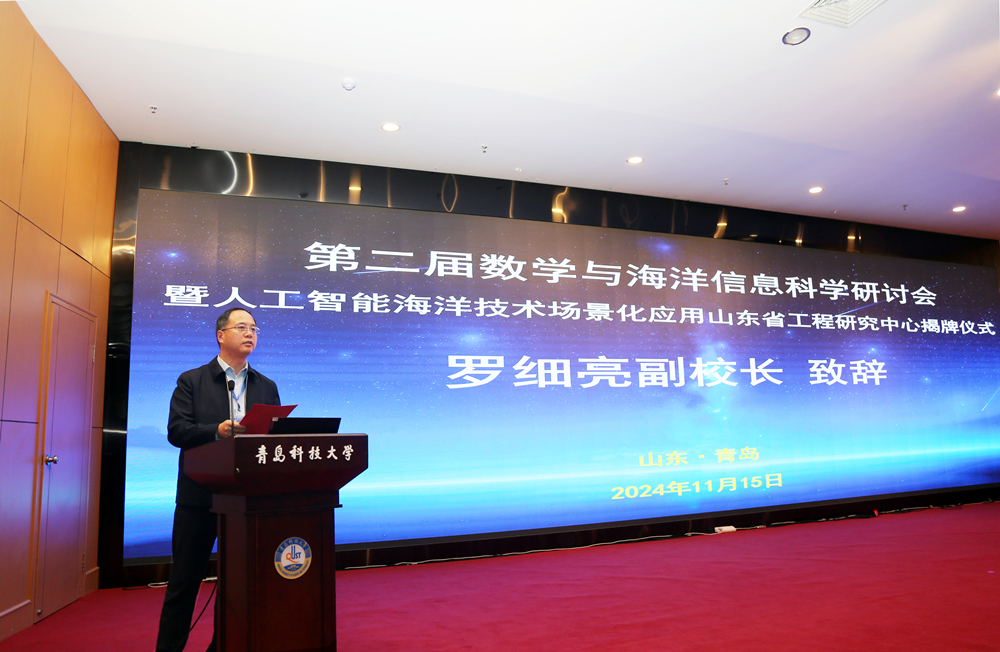 罗细亮在致辞中介绍了学校的发展历史、办学格局、学科特色等,充分肯定了本次会议对学校学科建设、平台建设等方面的重要作用。他表示,学校聚焦山东海洋强省建设和青岛打造现代海洋经济发展高地目标,发挥青岛海洋科研集聚优势,整合校内外资源,积极推动数学与大数据、海洋科学、人工智能海洋学等新兴学科和专业的交叉融合,有组织服务地方经济社会发展。学校与自然资源部第一海洋研究所、青岛阅海信息公司共同申报的“人工智能海洋技术场景化应用山东省工程研究中心”成功获批,必将进一步推动创新链产业链深度融合,加速人工智能前沿技术在海洋产业领域的创新应用,为构建现代海洋产业体系增势赋能。