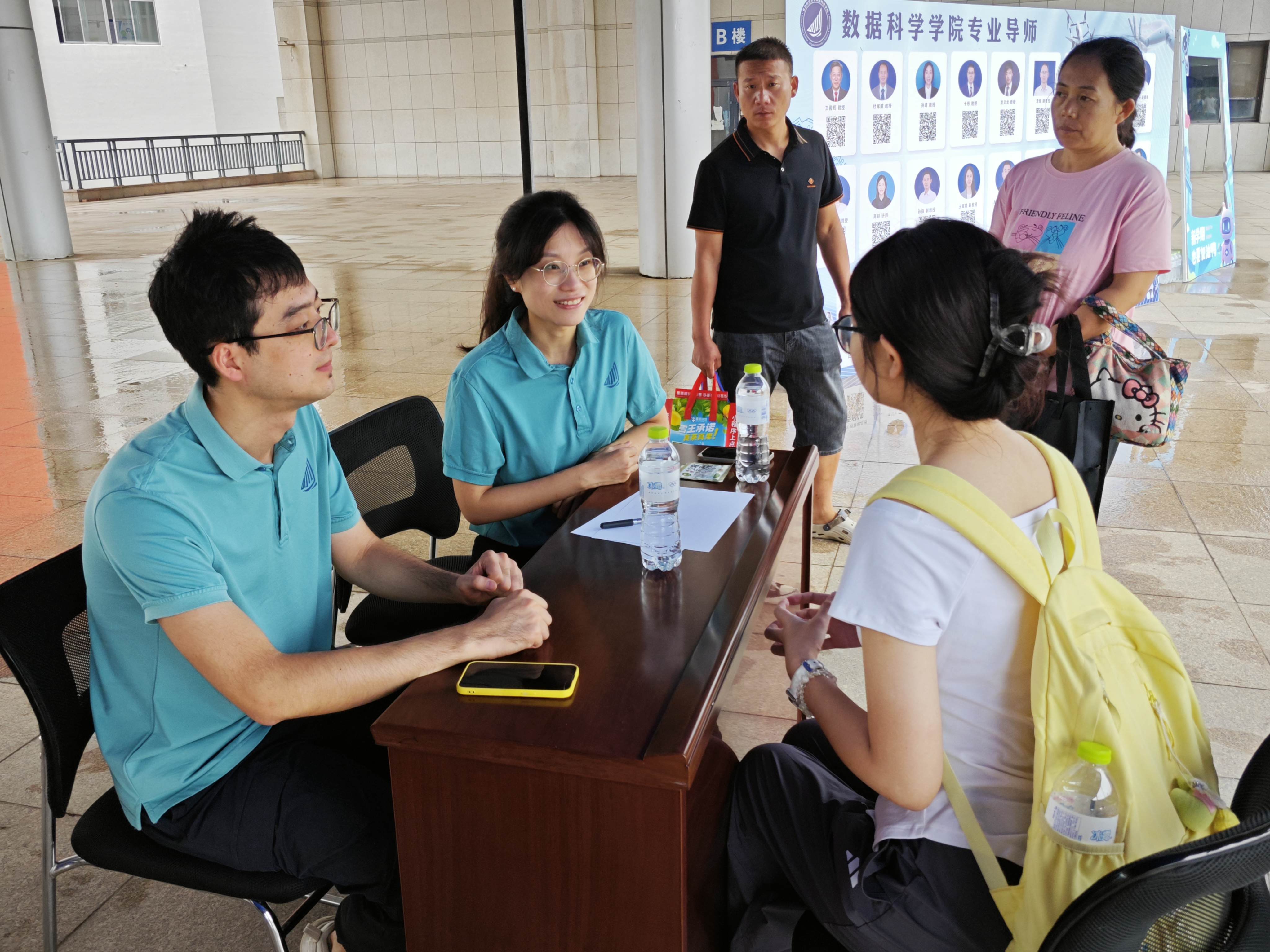 数据科学学院以“全员协同育人 学科赋能成长”为核心,让协同力量贯穿迎新全过程,学科优势融入服务细节。“专业导师思享+”—量身规划明方向。现场设 “专业导师微对话” 区,导师针对 “专业就业方向”“跨学科学习资源获取” 等一对一答疑,量身定制学业蓝图,以学科优势作新生成长 “导航仪”;“朋辈思享+”—成果展示增信心。学院搭建学生发展成果展示区,社会实践、志愿服务、科技创新团队负责人呈现学子成长轨迹,让家长直观感受育人成效、放心学生发展;对在校期间的成果进行展示,让家长对学校学生发展情况放心;“校友思享+”—温情陪伴暖人心。结合数据科学领域职业经历,分享自身故事与专业前景,传递温情;“云端思享+”—直观导航易适应。由在校生制作 3D 校园地图,标注教学楼、实验室位置,以学科技术成果助新生快速熟悉校园。