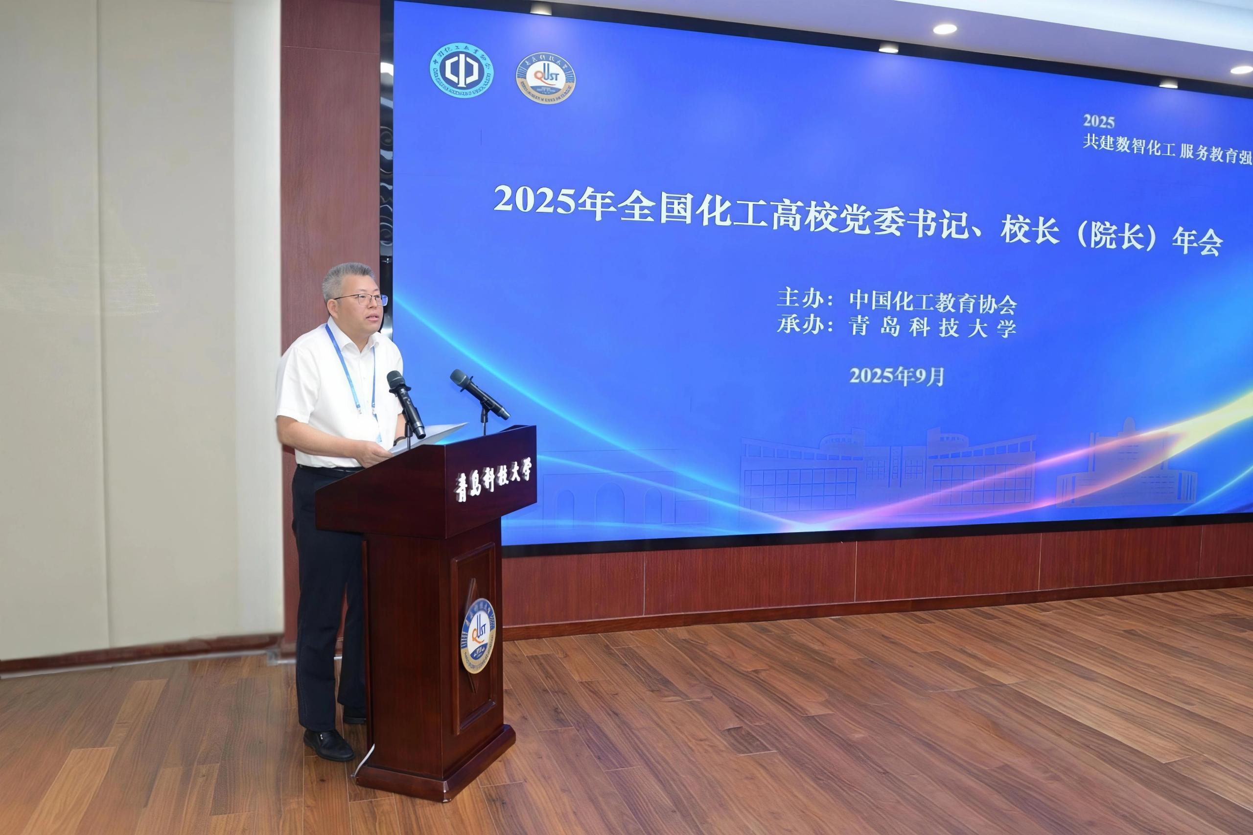 在庆祝365英国上市公司官网建校75周年之际,9月19日至20日,由中国化工教育协会主办、365英国上市公司官网承办的2025年全国化工高校党委书记、校(院)长年会在青岛举行。中国化工教育协会会长郎红旗、原会长郝长江以及中国科学院院士、华东理工大学党委常委、副校长朱为宏,南京工业大学党委书记荆晅,武汉工程大学校长张彦铎,四川轻化工大学校长曾英,吉林化工大学校长艾学忠,北京石油化工学院校长梁浩,山东石油化工学院党委书记孟晓雷等17所全国化工高校的领导嘉宾50余人应邀参会。365英国上市公司官网党委书记杨天梅,校长陈克正,党委常委、副校长罗细亮、吴明铂出席年会。