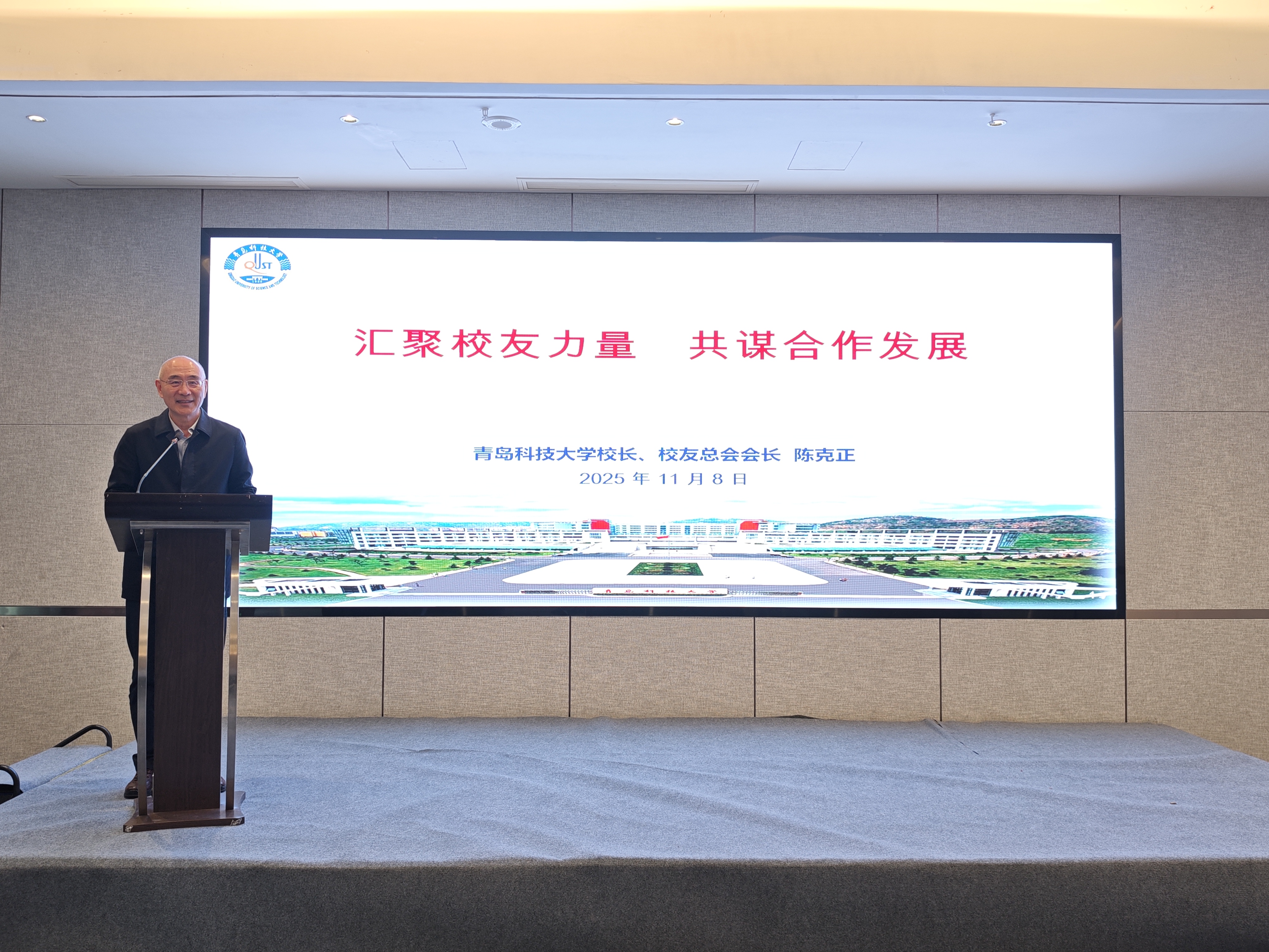 陈克正代表学校向校友们介绍了学校的总体发展状况,并为江西校友会授旗、为“校友之家”揭牌。他表示,学校建校75年来始终坚持“两服务一引领”发展战略定位:服务国家战略,天然橡胶是重要的战略物资,母校始终与国家战略同频共振,坚持走特色发展之路;服务区域发展,母校通过科技成果转化或提供核心技术支撑的上市公司已达10家,其中8家落地青岛,有力地支持了地方经济发展;引领行业进步,先后获批行业国家级工程技术研究中心、国家级工程研究中心、全国重点实验室,为引领行业高质量发展奠定了坚实基础。他回顾了十四五以来母校取得的发展成就:学科专业建设迈上新台阶,创新人才培养取得新成效,科技创新与社会服务能力实现新提升,学校总体建设呈现新风貌。同时对江西校友会第二届理事会提出三点希望:一是持续强化校友会的“磁场引力”,增强校友们的归属感和凝聚力,保证校友会工作红红火火。二是持续增加与校友们的“双向奔赴”,创新校友服务模式,丰富校友活动内容,加强校友间的交流与合作,助力校友与母校共同成长。三是持续打造校友会的“品牌特色”,切实发挥校友会平台作用,做青科大在江西的代言人,实现江西与学校在高质量发展上互利共赢。