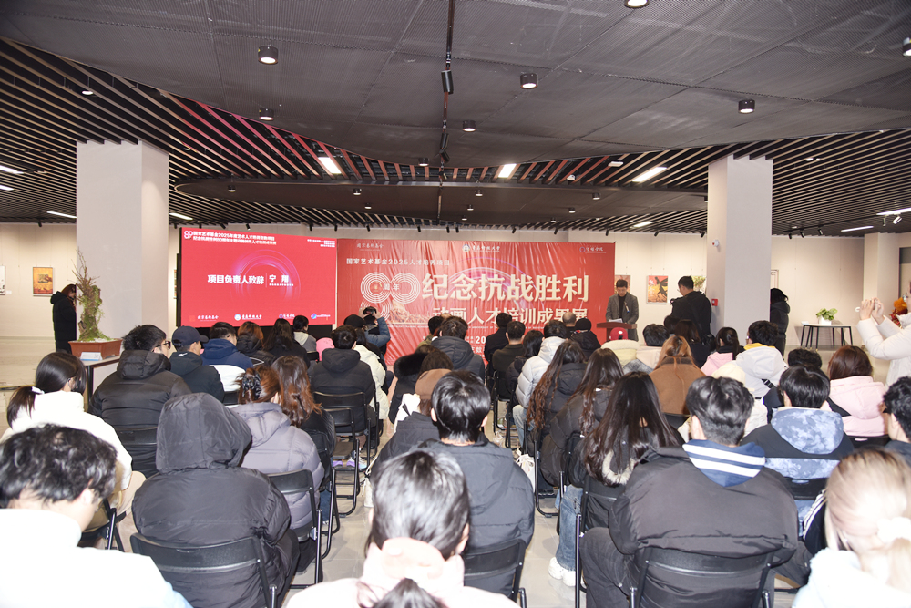李勇在开幕式上致辞,代表学校对项目成果给予高度肯定。他指出,该项目是国家艺术基金对学校办学实力特别是艺术学科建设与人才培养能力的高度信任与认可。项目成功探索了历史主题引领下,艺术创作与高端专业人才培养的创新融合之路。学员们将深沉的历史感悟转化为生动的艺术语言,创作出一批有筋骨、有道德、有温度的作品,是学校服务国家文化战略、落实立德树人根本任务的生动体现。