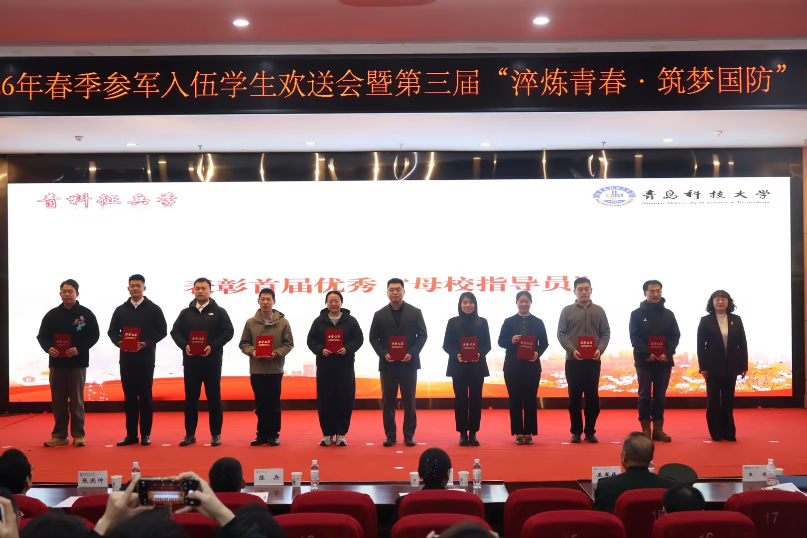 各学院、校区分管学生工作副书记,征兵工作联系人,2026届毕业生辅导员,2026年春季参军入伍新兵及预征预储学员代表参加欢送会。