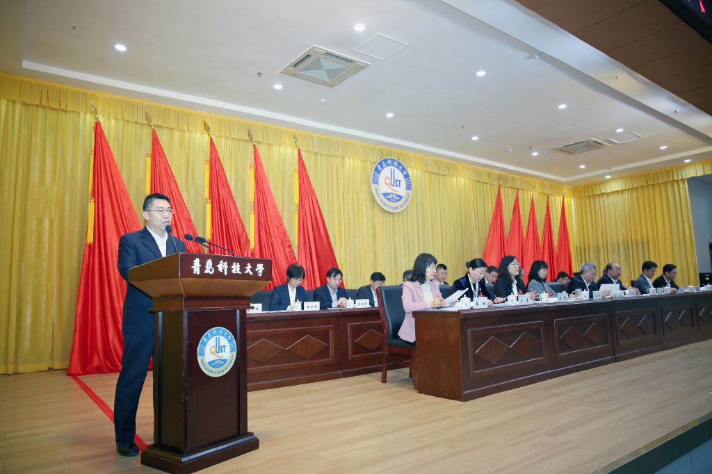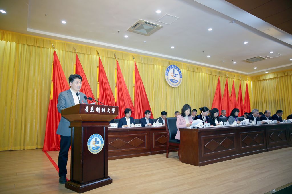4月11日,学校第八届教职工代表大会第四次会议在崂山校区第二报告厅召开。学校党政领导班子成员杨天梅、李勇、沈文青、吕万翔、李萍、吴明铂、王震、张洪坤、秦姣出席会议。